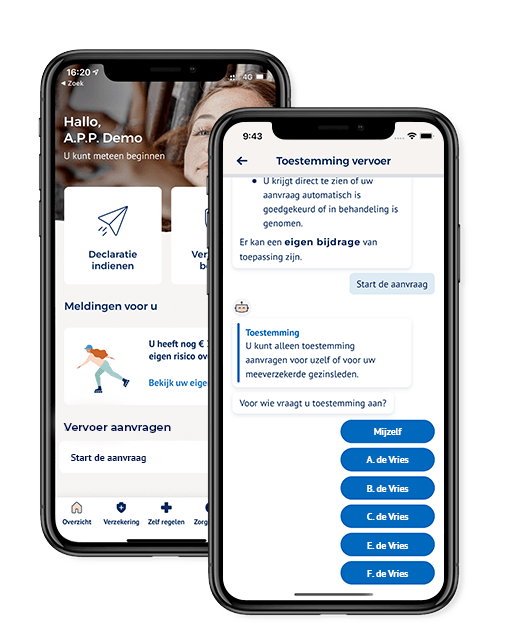 Jij of iemand waarmee je samen op de polis staat, reist naar een zorgverlener. En je wilt hiervoor toestemming voor vervoer aanvragen. Dit regel je zelf snel, veilig en makkelijk via onze app. Ook je bestaande toestemming(en) wijzig je zelf in de app.