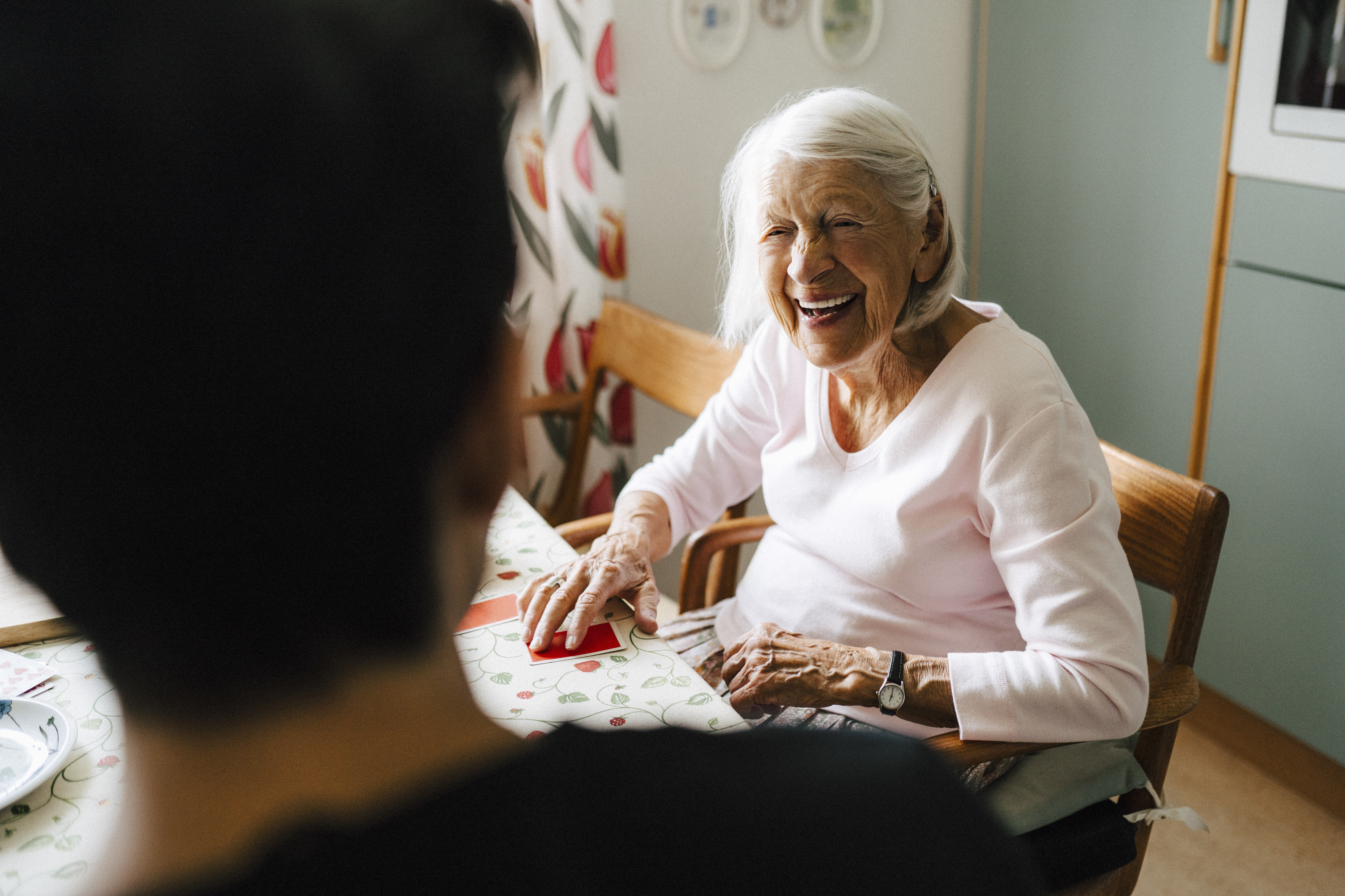 Mede voor haar moeder is Heleen uiteindelijk naar Doorn verhuisd. "Het is fijn dat mijn dochter nu meer in de buurt woont", zegt Anneke. Niet alleen omdat hulp dichterbij is, ook omdat ze haar kleinzoon nu vaker ziet. "Dat is echt een schatje", zegt ze blij. "En hij is heel beleefd. Heel anders dan zijn moeder." Anneke lacht, vooral omdat ze zich bewust is hoeveel ze op Heleen steunt. Daar maakt ze zich vaak zorgen over. "Ze heeft haar zoontje en haar werk, maar zij heeft ook haar rust nodig." Anneke weet hoe het is. Zelf heeft ze ook voor haar eigen moeder gezorgd. "Ze wilde niet dat ik haar waste. Ik was elke keer zelf kleddernat." Hoewel ze de situatie van toen natuurlijk noemt, vindt ze het toch lastig om de hulp van haar dochter te accepteren. "Ik ben altijd heel onafhankelijk geweest", zegt Anneke. "Ik wil haar niet tot last zijn."